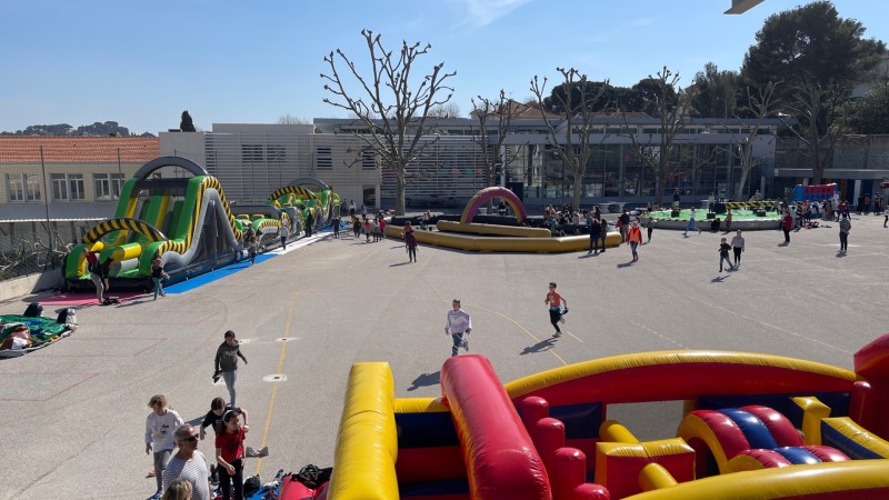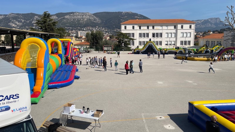 Le directeur a voulu rendre cette journée exceptionnelle les 1500 enfants ont pu s’amuser toute l’après-midi sur les stands de kermesse et les structures gonflables mises à leur disposition sous la surveillance des professeurs.